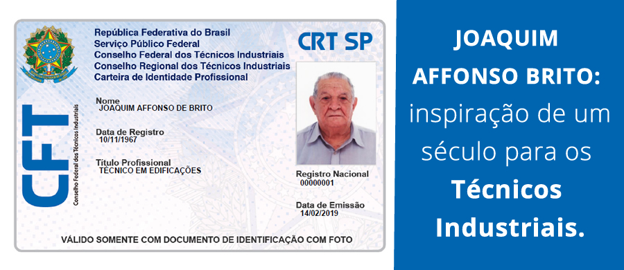 O Conselho Federal dos Técnicos Industriais felicita o Técnico em Edificações Joaquim Affonso de Brito por seu aniversário de 100 anos. Nascido em 1919, na cidade de Santa Eudóxia (interior de São Paulo) – Joaquim, aos 5 anos de idade,…